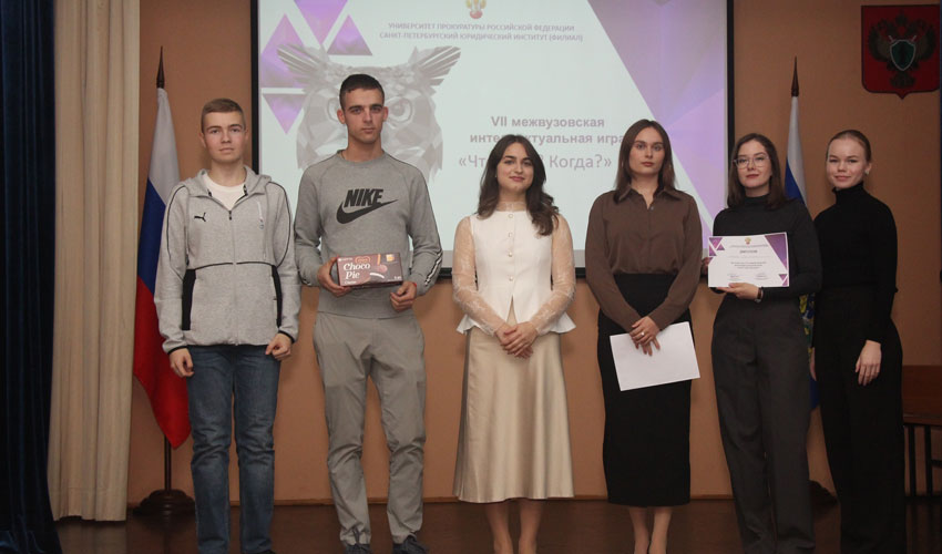 11 октября 2025 г. в Санкт-Петербургском филиале Университета прокуратуры Российской Федерации состоялась Седьмая межвузовская интеллектуальная игра «Что? Где? Когда?», организованная Сектором по внешним связям Студенческого совета Института. Участие в игре приняли обучающиеся 8-ми вузов: Санкт-Петербургского государственного университета, Ленинградского областного филиала Санкт-Петербургского университета МВД России, Санкт-Петербургского филиала Финансового Университета при Правительстве РФ, Санкт-Петербургского университета МВД РФ, Санкт-Петербургского государственного морского технического университета, Санкт-Петербургского филиала Российской таможенной академии им. В.Б. Бобкова, Санкт-Петербургского государственного педиатрического медицинского университета, Института. Интеллектуальное состязание состояло из двух туров: командам были предложены игровые задания, включающие в себя вопросы на эрудицию, начитанность, смекалку и сообразительность. По итогам напряженной игры места на пьедестале распределились следующим образом: I место — команда Санкт-Петербургского филиала Финансового университета «Пингвикторина»; II место — команда Санкт-Петербургского филиала Университета прокуратуры Российской Федерации «Острые пузырьки»; III место — команда Санкт-Петербургского университета МВД РФ «286 team». Поздравляем победителей и призеров, благодарим всех участников и желаем дальнейших побед!