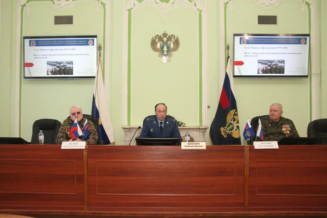 13 февраля 2026 г. в Санкт-Петербургском филиале Университета прокуратуры Российской Федерации состоялась встреча студентов юридического факультета с ветеранами Афганской войны, приуроченная к приближающемуся памятному Дню памяти о россиянах, исполнявших служебный долг за пределами Отечества («День памяти воинов-интернационалистов»). Мероприятие было организовано совместными усилиями Патриотического клуба Института и студенческого научного кружка «Правоохранительные органы».