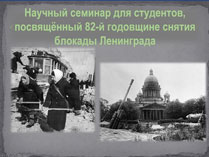 Научно-просветительский семинар, посвященный 82-й годовщине снятия блокады Ленинграда |