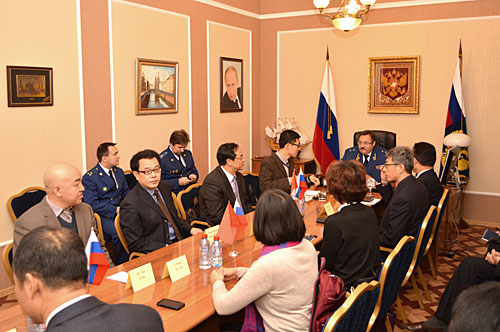30 октября 2014 г. в Санкт-Петербургском юридическои институте (филиале) Академии Генеральной прокуратуры Российской Федерации с целью ознакомления с системой образования в прокуратуре России и обмена опытом состоялась встреча руководства и коллектива филиала Академии с делегацией Верховной Народной Прокуратуры Китайской Народной Республики. Со стороны органов прокуратуры Китайской Народной Республики Институт посетили 19 человек, в том числе 4 человека из Центрального аппарата Верховной Народной Прокуратуры Китайской Народной Республики, а также 15 заместителей прокуроров прокуратур провинций Китайской Народной Республики. В ходе встречи обсуждались вопросы организации деятельности органов прокуратуры Российской Федерации и Китайской Народной Республики, порядок и особенности осуществления профессиональной переподготовки и повышения квалификации прокурорских работников в Академии Генеральной прокуратуры Российской Федерации. Члены делегации приняли участие в торжественной церемонии выпуска слушателей факультета профессиональной переподготовки и повышения квалификации Санкт-Петербургского юридического института (филиала) Академии Генеральной прокуратуры Российской Федерации – заместителей прокуроров городов и районов из 50 территориальных и специализированных прокуратур субъектов Российской Федерации, успешно завершивших обучение по программе повышения квалификации: «Прокурорский надзор за исполнением законов и законностью правовых актов».