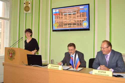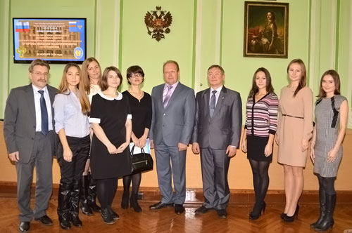 05 ноября 2014 г. в Санкт-Петербургском юридическом институте (филиале) Академии Генеральной прокуратуры Российской Федерации состоялась встреча прокурора Ненецкого автономного округа государственного советника юстиции 3 класса Николая Валентиновича Егорова со студентами юридического факультета Института, обучающимися по целевым направлениям прокуратуры округа. Во встрече приняли участие заместитель директора института Сальников А.В., декан юридического факультета Севастьяник И.К., а также представители землячества Ненецкого автономного округа – и.о. руководителя представительства округа в Санкт-Петербурге Акимова Виктория Викторовна, председатель Совета Санкт-Петербургского землячества округа Хатанзейский Константин Кимович, ведущий менеджер по связям с общественностью представительства округа Бадьян Светлана Алексеевна и член молодежного крыла землячества Тайбарей Светлана. В ходе встречи были обсуждены вопросы подготовки кадров для органов прокуратуры, прокурор Ненецкого автономного округа Н.В. Егоров обратил внимание студентов–целевиков на задачи, стоящие перед прокуратурой и выразил уверенность, что студенты, окончившие Академию Генеральной прокуратуры Российской Федерации, войдут в дружный коллектив прокуратуры Ненецкого автономного округа и смогут на практике применить знания, полученные в институте. С сообщением о работе землячества округа выступили Акимова В.В., Хатанзейский К.К., Тайбарей С. Студенты с интересом посмотрели фильм, посвященный 85-летию прокуратуры Ненецкого автономного округа и провели для представителей землячества экскурсию по Институту.