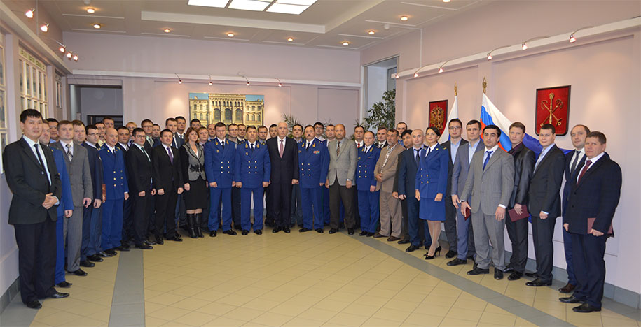 18 ноября 2015 г. в Санкт-Петербургском юридическом институте (филиале) Академии Генеральной прокуратуры Российской Федерации проведена итоговая аттестация слушателей, проходивших обучение по программе профессиональной переподготовки прокурорских работников, состоящих в резерве кадров для выдвижения на должности прокуроров городов, районов и приравненных к ним прокуроров. В течение более двух месяцев слушатели потока приобрели дополнительные навыки организации работы и управления, изучали комплекс общеправовых и специализированных дисциплин, методики прокурорского надзора за исполнением законов, вопросы участия прокурора в рассмотрении судами гражданских и уголовных дел, проблемы реализации норм уголовного и уголовно-исполнительного законодательства с участием прокурора.