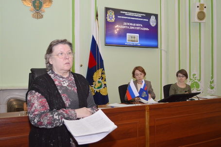 20 декабря 2016 года в Санкт-Петербургском юридическом институте (филиале) Академии Генеральной прокуратуры Российской Федерации Советом молодых ученых Института была организована и проведена деловая игра «Защита диссертации». Целью деловой игры «Защита диссертации» являлось развитие у аспирантов и магистрантов Санкт-Петербургского юридического института (филиала) Академии Генеральной прокуратуры Российской Федерации умений и навыков, необходимых для предоставления и защиты диссертационного исследования на соискание ученой степени кандидата юридических наук и магистерского диссертационного исследования. В рамках данного научного мероприятия соискателем ученой степени кандидата юридических наук кафедры уголовного права, криминологии и уголовно-исполнительного права З.Э. Эргашевой была представлена к публичной защите одна из трех глав её диссертационного исследования. Деловая игра проведена в форме открытого заседания диссертационного совета, в состав которого вошли председатель диссертационного совета – доктор юридических наук, профессор Н.А. Данилова, члены диссертационного совета доктор юридических наук, профессор О.Н. Коршунова, доктор юридических наук, профессор А.Н. Попов, кандидат юридических наук, доцент Д.Ю. Краев, старший преподаватель П.В. Федышина, кандидат юридических наук, доцент М.А. Григорьева, кандидат юридических наук, доцент И.И. Головко, кандидат юридических наук В.В. Лавров и кандидат юридических наук, доцент С.Л. Басов, в качестве ученого секретаря диссертационного совета выступила аспирант очной формы обучения А.Н. Ильина. В заседании диссертационного совета также приняли участие: научный руководитель: М.А. Любавина, кандидат юридических наук, доцент; официальные оппоненты: Д.А. Безбородов, кандидат юридических наук, доцент; Р.М. Кравченко, старший преподаватель. В дискуссии на деловой игре приняли активное участие заведущий кафедрой прокурорского надзора и участия прокурора в рассмотрении уголовных, гражданских и арбитражных дел доктор юридических наук, профессор О.Н. Коршунова, кандидат юридических наук, доцент И.И. Головко. В деловой игре также принимали участие аспиранты и магистранты Санкт-Петербургского юридического института (филиала) Академии Генеральной прокуратуры Российской Федерации. Проведение деловой игры организовано Советом молодых ученых Института.