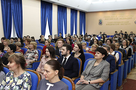 07 марта 2018 г. в актовом зале Санкт-Петербургского филиала Академии Генеральной прокуратуры Российской Федерации состоялось торжественное собрание, посвящённое Международному женскому дню. И.о. директора Института Сальников А.В. поздравил присутствующих гостей, коллектив Института и обучающихся с весенним праздником 8 марта, пожелал всем милым женщинам доброго здоровья, благополучия, счастья, любви, молодости и красоты, оставаться всегда такими же обаятельными, добросердечными. На собрании были оглашены и вручены приказы Генерального прокурора Российской Федерации и директора Института о поощрении в связи с празднованием Международного женского дня. Концертными номерами присутствующих поздравили студенты юридического факультета Института. Сынков Владимир исполнил песню «Аленушка»; Тораева Александра представила танец «Ты дарила мне розы»; Зимин Максим прочитал стихотворение «Нежность»; Перевезенцева Наталья исполнила песню «Россия»; Гаврилова Дарья и танцевальный коллектив выступили с вокально-танцевальной постановкой из кинофильма «Карнавал». Коллектив студентов: Хинчагов Анатолий, Дзебсева Кристина, Бичегкуева Зарина, Кокоев Владислав и Саламов Хетаг выступили с Осетинским танцем «Хонга-Кафт».