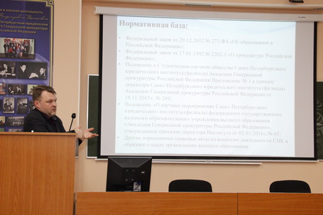 14 марта 2018 года в Санкт-Петербургском филиале Академии Генеральной прокуратуры Российской Федерации проведен очередной учебно-методический семинар для профессорско-преподавательского состава Института. В рамках семинара были обсуждены актуальные вопросы организации учебного процесса и деятельности педагогического работника. Доцент кафедры теории и истории государства и права Иванова Н.М. в своем выступлении осветила вопросы истории женского образования в России. Доцент кафедры уголовного процесса и криминалистики Ларинков А.А. провел обмен опытом по вопросам организации и проведении мероприятий в рамках деятельности студенческого научного кружка по уголовному процессу. Вопросы информационной безопасности раскрыл инженер отдела информационных технологий Вад В.Л.