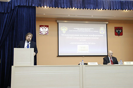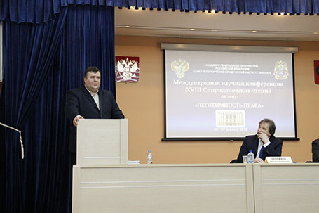 6-7 апреля 2018 г. в Санкт-Петербургском филиале Университета прокуратуры Российской Федерации состоялась международная научная конференция XVIII-е Спиридоновские чтения на тему «ЛЕГИТИМНОСТЬ ПРАВА». Конференция была посвящена творчеству выдающегося теоретика права и криминолога Льва Ивановича Спиридонова, автора концепции диалектической социологии права. В конференции приняли участие крупнейшие теоретики права страны: Д.И. Луковская, А.В. Поляков, Н.В. Варламова, Л.И. Глухарева, Р.А Ромашов, И.Л. Честнов, историки права: Д.А. Пашенцев, А.А. Дорская, Н.Н. Ефремова, социолог права Е.В. Масловская, ведущий криминолог стран Балтии А. Лепс (Таллинский университет), специалисты международного права и отраслевых юридических наук, представлявших Институт государства и права РАН, Санкт-Петербургский государственный университет, Воронежский государственный университет, Ивановский государственный университет, Московский городской педагогический университет, Российский государственный педагогический Университет им. А.И. Герцена, Северо-Западный институт управления Российской Академии народного хозяйства и государственной службы при Президенте Российской Федерации, Саратовскую государственную юридическую Академию, Петрозаводский государственный университет, Южно-Уральский государственный университет и другие вузы страны. Открыл конференцию заместитель директора института А.А. Сапожков. От кафедры теории и истории государства и права, по инициативе которой была организована конференция, с докладами выступили Е.Е. Амплеева, И.Л. Честнов, Н.М. Иванова, А.В. Ерёмин, от кафедры государственно-правовых дисциплин – заведующий кафедрой В.В. Лавров.