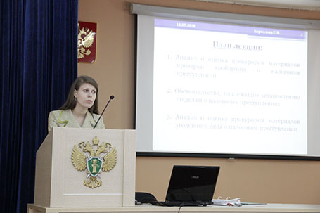 18 мая 2018 г. Санкт-Петербургским филиалом Университета прокуратуры Российской Федерации во взаимодействии с прокуратурами Санкт-Петербурга, Ленинградской области, Северо-Западной транспортной прокуратурой и Военной прокуратурой Западного военного округа проведены учебные занятия в рамках повышения квалификации в системе органов прокуратуры. В занятиях приняли участие сотрудники прокуратур Санкт-Петербурга, Ленинградской области, Северо-Западной транспортной прокуратуры и Военной прокуратуры Западного военного округа. Доцент кафедры уголовного права, криминологии и уголовно-исполнительного права Зарубин А.В. прочитал лекцию «Проблемные вопросы квалификации преступлений экстремистского и террористического характера». Профессор кафедры уголовного процесса и криминалистики Николаева Т.Г. и доцент кафедры Баркалова Е.В. провели занятия по темам: «Взыскание процессуальных издержек при прекращении судом уголовных дел в связи с декриминализацией», «Особенности прокурорского надзора за расследованием уголовных дел в сфере налоговых преступлений». Доценты кафедры прокурорского надзора и участия прокуроров в рассмотрении уголовных, гражданских и арбитражных дел Головко И.И, и Исламова Э.Р., а также старший преподаватель кафедры Плугарь Д.М. в ходе занятий осветили вопросы организации и осуществление прокурорского надзора за исполнением законодательства в сфере безопасности на водном транспорте; особенностей прокурорского надзора за исполнением законодательства о таможенном контроле, в т.ч. требований Указа Президента РФ от 06.08.2014 № 560; прокурорского надзора за соблюдением прав военнослужащих и членов их семей, в т.ч. в социальной сфере и исполнения жилищного законодательства.