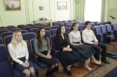 14 июня 2018 г. в Санкт-Петербургском филиале Университета прокуратуры Российской Федерации во исполнение требований приказа Генерального прокурора Российской Федерации от 31.01.2017 № 54 «Об организации работы по обеспечению целевого приема и целевого обучения граждан в государственных образовательных организациях высшего образования» состоялась встреча прокурора Ненецкого автономного округа государственного советника юстиции 3 класса Н.В. Егорова со студентами юридического факультета Института, обучающимися по целевым направлениям прокуратуры округа. Встреча проходила в режиме видеоконференцсвязи с прокуратурой Ненецкого автономного округа. Во встрече приняли участие заместитель директора института Сальников А.В. и декан юридического факультета Севастьяник И.К. Посредством видеоконференцсвязи во встрече участвовали первый заместитель прокурора округа Кудрявец В.Н., представители аппарата прокуратуры, а также родители студентов. Декан факультета Севастьяник И.К. проинформировала о результатах зачетно-кзаменационной сессии. Далее студенты отчитались о ходе обучения в Санкт-Петербургском филиале. Прокурор Ненецкого автономного округа Н.В. Егоров обратил внимание студентов-целевиков на задачи, стоящие перед прокуратурой и ориентировал на успешное обучение с целью дальнейшего применения на практике знаний, полученных в институте.