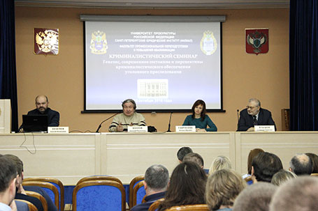 25 октября 2018 г. в Санкт-Петербургском юридическом институте (филиале) Университета прокуратуры Российской Федерации состоялся научно-практический криминалистический семинар по теме: «Генезис, современное состояние и перспективы криминалистического обеспечения уголовного преследования», приуроченный к 64-летию создания службы прокуроров–криминалистов. В работе криминалистического семинара приняли участие профессорско-преподавательский состав Института, консультант-наставник Следственного Управления Следственного комитета по Ленинградской области Волков А.В., заместитель начальник ФБУ «Северо-Западный региональный центр судебной экспертизы» Минюста России Гаврилова Н.Ю., заведующий кафедрой криминалистики Санкт-Петербургской Академии Следственного комитета Российской Федерации Глушков М.Р., профессор кафедры уголовно-процессуального права Северо-Западного филиала Российского государственного университета правосудия, д.ю.н., профессор Ялышев С.А., доцент кафедры уголовно-процессуального права Северо-Западного филиала Российского государственного университета правосудия, к.ю.н., доцент Сидоренко Е.В., доцент кафедры уголовно-процессуального права Северо-Западного филиала Российского государственного университета правосудия, к.ю.н., доцент, Корсаков К.А., слушатели факультета профессиональной переподготовки и повышения квалификации, обучающиеся по программам профессиональной переподготовки прокурорских работников, состоящих в резерве кадров для выдвижения на должности прокуроров городов и районов и приравненных к ним прокуроров, повышения квалификации старших помощников, помощников прокуроров городов и районов, осуществляющих надзор за исполнением законодательства о противодействии коррупции. На криминалистическом семинаре были представлены следующие доклады: «История формирования службы прокуроров-криминалистов» (Холопов А.В.); «Криминалистика: от прокуратуры Союза ССР до Следственного комитета Российской Федерации» (Волков А.В.); «Проблемы судебно-экспертного сопровождения расследования преступлений ФБУ «Северо-Западным РЦСЭ» Минюста России» (Гаврилова Н.Ю.); «Исследование как элемент заключения эксперта» (Глушков М.Р.); «Перспективы информационного обеспечения расследования преступлений: взгляд наблюдателя» (Ялышев С.А.); «Тактические вопросы допроса подозреваемого (обвиняемого) при участии защитника» (Сидоренко Е.В.); «Некоторые направления развития криминалистики» (Корсаков К.А.); «Криминалистическое обеспечение деятельности прокурора в досудебном производстве» (Непеин Г.Г.). Из числа слушателей с докладами выступили заместитель прокурора Лаганского района Республики Калмыкия А.С. Горский и заместитель Сочинского транспортного прокурора Южной транспортной прокуратуры А.В. Афанасьев, которые подчеркнули необходимость криминалистического обеспечения деятельности прокурора в досудебном производстве. В ходе дискуссионной части круглого стола участники обменялись мнениями по вопросам криминалистического обеспечения прокурорской деятельности, использования специальных знаний в уголовном судопроизводстве, взаимодействия прокуратуры с органами, осуществляющими предварительное расследование.