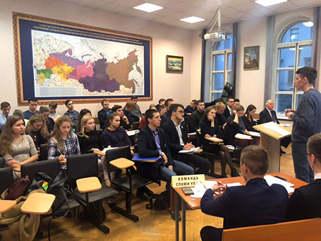 31 октября 2018 года в Санкт-Петербургском филиале Университета Прокуратуры Российской Федерации состоялась межвузовская деловая игра в формате студенческой игры «дебаты» по теме «Фальсификация исторических события – всеобщее благо или преступление». В деловой игре принимали участие 4 команды: студенты Санкт-Петербургского юридического института (филиала) Университета Прокуратуры РФ, студенты Санкт-Петербургской академии Следственного Комитета РФ, студенты Российского государственного университета правосудия. В состав жюри вошли доцент кафедры общегуманитарных и социально-экономических дисциплин А.Н.Ковалев, помощник прокурора города Воронежа Воронежской области юрист 1 класса Е.А.Калугина, помощник прокурора Сургутского района Ханты-Мансийского автономного округа Югры юрист 3 класса Е.Ф.Кожина. Студенты веди дискуссию о роли фальсификации истории в современном обществе по правилам британского формата студенческой игры «дебаты». Все участники продемонстрировали знание правил ведения дискуссии, приводили различные аргументы, которые раскрыли поднятую проблему с абсолютно разных сторон, а также продемонстрировали навыки ораторского мастерства. По итогам дискуссии I место заняли представители Академии Следственного Комитета РФ: Киселев Александр и Зимовец Петр. II место заняли представители Санкт-Петербургского Юридического Института: Кошкаровский Влад и Голубина Александра III место заняли представители Академии Следственного Комитета РФ: Безрядина Олеся и Юшкевич Полина. Победившие команды были награждены Дипломами и сладкими призами. Участникам других команд были вручены Сертификаты участников. Благодарим всех за участие и с радостью ждём на следующих мероприятиях!