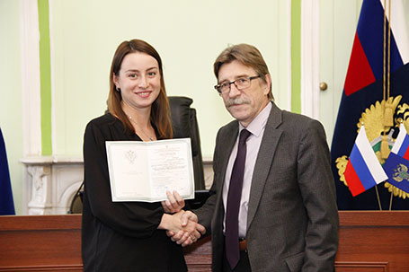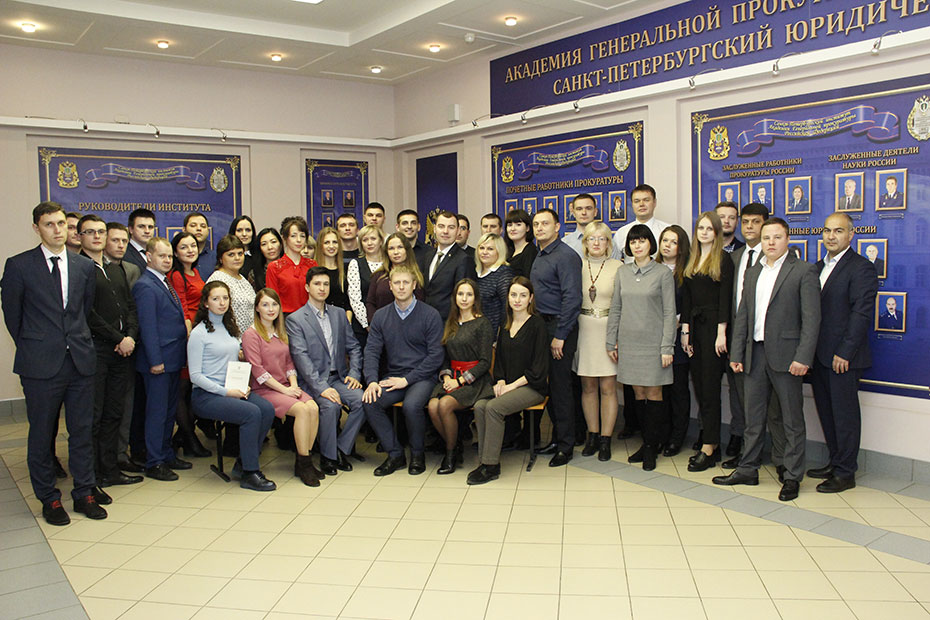 01 ноября 2018 г. в Санкт-Петербургском филиале Университета прокуратуры Российской Федерации проведена итоговая аттестация слушателей, проходивших обучение по программе повышения квалификации старших помощников, помощников прокуроров городов и районов, осуществляющих надзор за исполнением законодательства о противодействии коррупции. В течение обучения слушатели приобрели дополнительные навыки организации работы и информационного обеспечения в прокуратуре города и района, а также обновили знания по разделам учебной программы: выявление коррупционных правонарушений с использованием прокурорских полномочий; участие прокурора в гражданском судопроизводстве; прокурорский надзор за исполнением законов при осуществлении оперативно-розыскной деятельности в сфере противодействия преступлениям коррупционной направленности; сложные вопросы квалификации преступлений коррупционной направленности; криминалистические аспекты деятельности прокурора при анализе и оценке доказательств по уголовным делам о преступлениях коррупционной направленности. В рамках круглого стола обсудили актуальные вопросы осуществления прокурорского надзора за исполнением законодательства о противодействии коррупции. В ходе научно-практического криминалистического семинара «Генезис, современное состояние и перспективы криминалистического обеспечения уголовного преследования» обменялись мнениями по вопросам криминалистического обеспечения прокурорской деятельности, в том числе при надзоре за процессуальной деятельностью при расследовании коррупционных преступлений, использования специальных знаний в уголовном судопроизводстве, взаимодействия прокуратуры с органами, осуществляющими предварительное расследование. В завершение итоговой аттестации в торжественной обстановке заместители директора Института А.В. Сальников и А.А. Сапожков поздравили слушателей с успешным окончанием обучения и вручили удостоверения о повышении квалификации.