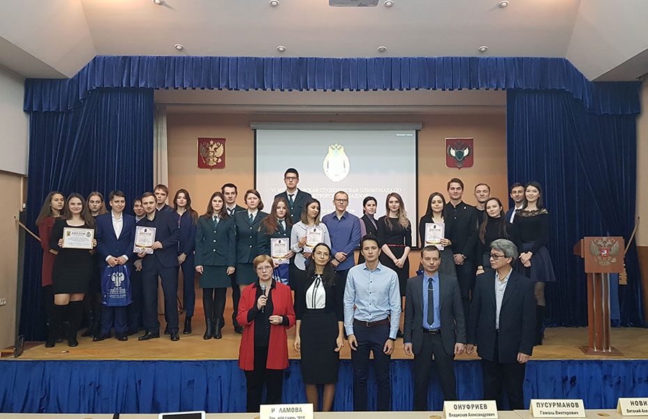 23 ноября 2018 года в Санкт-Петербургском юридическом институте (филиале) Университета прокуратуры Российской Федерации состоялась VI Межвузовская студенческая олимпиада по прокурорскому надзору. В олимпиаде приняли участие семь команд из 4 ВУЗов: «Стражи законности» – Северо-Западный филиал Российского государственного университета правосудия; «Магистранты» – Санкт-Петербургский юридический институт (филиал) Университета прокуратуры Российской Федерации; «Еще не прокуроры» – Санкт-Петербургский юридический институт (филиал) Университета прокуратуры Российской Федерации; «Таможенники» – Санкт-Петербургский имени В.Б. Бобкова филиал Российской таможенной академии; «Ночной надзор» – Санкт-Петербургский юридический институт (филиал) Университета прокуратуры Российской Федерации; «Минюст» – Санкт-Петербургский институт (филиал) Всероссийского государственного университета юстиции (РПА Минюста России); «Ad Victoriam» – Санкт-Петербургский юридический институт (филиал) Университета прокуратуры Российской Федерации. Олимпиада проводилась в пять этапов, в ходе которых команды выполнили пять конкурсных заданий, а именно: приветствие, конкурс на знание юридической терминологии, конкурс капитанов, анализ актов прокурорского реагирования, «Своя игра». Продемонстрированные теоретические знания и практические умения команд оценивались жюри, в состав которого вошли преподаватели и прокурорские работники. По итогам прохождения всех конкурсов команды заняли следующие места: 1 место – команда «Ad Victoriam», Санкт-Петербургский юридический институт (филиал) Университета прокуратуры Российской Федерации. Состав команды: Самохин Ярослав Евгеньевич (3 курс), Николаева Елена Алексеевна (3 курс), Захаров Денни Алексеевич (3 курс), Тораева Александра Александровна (3 курс), Шогенова Алина Асланбиевна (3 курс); 2 место – команда «Магистранты», Санкт-Петербургский юридический институт (филиал) Университета прокуратуры Российской Федерациию Состав команды: Альборова Азарина Андзоровна (1 курс магистратуры), Кичкинев Владислав Николаевич (1 курс магистратуры), Клюева Кристина Игоревна (1 курс магистратуры), Сытник Александр Николаевич (1 курс магистратуры), Тимошенко Илона Михайловна (1 курс магистратуры); Третье место жюри присудило двум участникам: команде «Таможенники» – Санкт-Петербургский филиал Российской Таможенной академии имени В.Б. Бобкова, студенты 4 курса: Багнюк Максим, Грибанова Ксения, Дзиов Тимур, Малышева Александра, Петрова Алена; и команде «Стражи законности» – Северо-Западный филиал Российского государственного университета правосудия, студенты 4 курса: Моисеенко Дмитрий, Лужецкий Максим, Лобынцев Кирилл, Колпикова Александра, Калиновский Кирилл. Выражаем благодарность студентам, прокурорским работникам и преподавателям и поздравляем победителей!