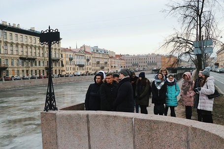 01 декабря 2018 года студенты юридического факультета Санкт-Петербургского филиала Университета прокуратуры Российской Федерации провели для обучающихся и гостей Института экскурсию «Петербург Достоевского». Мероприятие организовано членами экскурсионной группы Историко-архивной комиссии Института, студентками 3 курса Головизниной Любовью и Доброродовой Вероникой. Экскурсанты прошли следами самого известного в русской литературе студента юридического факультета - Родиона Раскольникова, героя романа «Преступление и наказание»: сосчитали 730 шагов от его дома до дома старухи-процентщицы; вспомнили основные вехи жизни Федора Михайловича Достоевского и события, повлиявшие на мировоззрение великого русского писателя. Во время экскурсии нашлось время и волшебству: экскурсионная группа посетила «Семимостье» - место, где канал Грибоедова пересекает Крюков канал. Участники смогли загадать свои заветные желания, которые непременно сбудутся! Студенческий совет благодарит всех, кто принял участие в экскурсии!