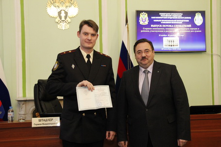20 декабря 2018 г. в Санкт-Петербургском филиале Университета прокуратуры Российской Федерации проведена итоговая аттестация слушателей, проходивших обучение по программе повышения квалификации старших помощников, помощников прокуроров городов и районов, участвующих в рассмотрении уголовных дел судами. В течение обучения слушатели приобрели дополнительные навыки организации работы и управления в прокуратуре города и района, а также обновили имеющиеся знания по разделам учебной программы: сложные вопросы квалификации преступлений; участие прокурора в рассмотрении уголовных дел судами; особенности тактики и методики поддержания государственного обвинения по уголовным делам отдельных категорий преступлений; правовая психология. В ходе проведенных деловых игр и тренингов «Участие прокурора в формировании коллегии присяжных заседателей», «Участие прокурора в рассмотрении уголовного дела с присяжными заседателями» слушатели выработали практические навыки поддержания государственного обвинения по уголовным делам, рассматриваемым с участием коллегии присяжных, обсудили вопросы эффективной работы обвинителя на всех этапах судебного разбирательства уголовного дела, включая процедуру формирования коллегии присяжных заседателей, судебное следствие и прения, постановку вопросов присяжным, обсуждение последствий вердикта. В рамках круглого стола обсудили современную практику и проблемы применения норм законодательства при поддержании государственного обвинения. В завершение итоговой аттестации в торжественной обстановке директор Института государственный советник юстиции 2 класса Г.В. Штадлер, а также заместители директора Института государственный советник юстиции 3 класса А.Д. Корсунов и старший советник юстиции А.В. Сальников поздравили слушателей с успешным окончанием обучения и вручили удостоверения о повышении квалификации.