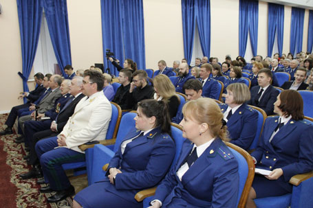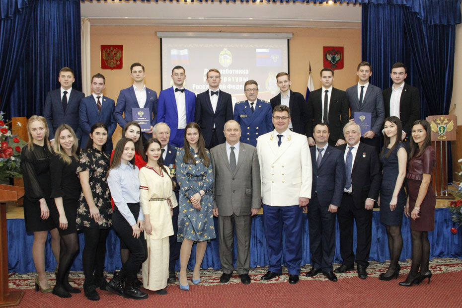 11 января 2019 г. в актовом зале Санкт-Петербургского филиала Университета прокуратуры Российской Федерации состоялось торжественное собрание, посвященное Дню работника прокуратуры Российской Федерации. В собрании приняли участие ветераны органов и организаций прокуратуры, коллектив и студенты Института. Участники торжественного собрания посмотрели видеопоздравление директора Санкт-Петербургского филиала Университета государственного советника юстиции 2 класса Г.В. Штадлера с Днем работника прокуратуры. Во вступительном слове и.о. директора Института старший советник юстиции А.В. Сальников поздравил всех ветеранов органов прокуратуры, Университета прокуратуры Российской Федерации и Института, сотрудников, членов их семей с профессиональным праздником, пожелал здоровья, служебных успехов, душевной гармонии, спокойствия и уверенности в завтрашнем дне. От лица ветеранов органов и организаций прокуратуры с поздравлениями выступили государственный советник юстиции 1 класса Б.И. Салмаксов, государственный советник юстиции 3 класса А.М. Дворянский, ветеран Института старший советник юстиции Б.В. Серов. С профессиональным праздником руководство и коллектив Института поздравил начальник Главного управления Минюста России по Санкт-Петербургу Д.Ю. Смирнов. В ходе торжественного собрания были оглашены поздравления, поступившие в адрес руководства и коллектива Института, и приказы Генерального прокурора Российской Федерации Ю.Я. Чайки, ректора Университета прокуратуры Российской Федерации О.С. Капинус, а также директора Института о поощрении профессорско-преподавательского состава и сотрудников Института за высокие показатели в научной и образовательной деятельности и студентов юридического факультета за достижения в различных областях студенческой жизни – учебной, научной, общественной, спортивной. Праздничными танцевальными и музыкальными номерами коллектив поздравили студенты юридического факультета Института.