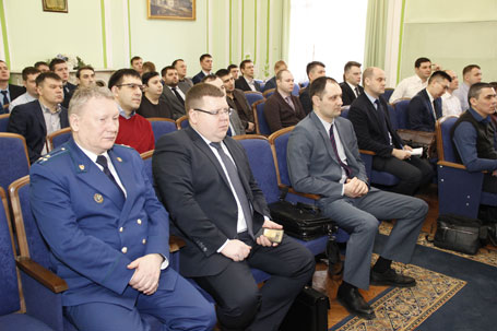 18 февраля 2019 года во исполнение Плана набора слушателей на 2018/2019 учебный год на факультете профессиональной переподготовки и повышения квалификации Санкт-Петербургского филиала Университета прокуратуры Российской Федерации состоялось открытие потока слушателей, проходящих обучение по программе профессиональной переподготовки прокурорских работников, состоящих в резерве кадров для выдвижения на должности прокуроров городов, районов и приравненных к ним прокуроров. Во вступительном слове директор Института государственный советник юстиции 2 класса Штадлер Г.В. поприветствовал слушателей от Университета прокуратуры Российской Федерации в лице Санкт-Петербургского филиала на открытии потока, указал на высокое значение, придаваемое руководством Генеральной прокуратуры Российской Федерации обучению прокурорских работников по программе профессиональной переподготовки для последующего надлежащего выполнения ими обязанностей прокуроров городов, районов и приравненных к ним прокуроров. Поставил задачи неукоснительного соблюдения требований учебного плана, включая выполнение промежуточного контроля в виде написания контрольных работ, сдачи зачетов и тестирований по разделам учебной программы и качественной подготовки к итоговому экзамену. Пожелал всем слушателям успешно освоить учебную программу и сдать итоговый междисциплинарный экзамен. Заместители директора Института Корсунов А.Д., Сальников А.В. и Сапожков А.А. выступили с приветственным словом к прибывшим слушателям, рассказал об особенностях обучения слушателей по программе профессиональной переподготовки, соблюдении требований, предъявляемых к прокурорским работникам, в том числе Кодексом этики. Декан факультета профессиональной переподготовки и повышения квалификации Шиплюк В.А. с использованием презентационных материалов рассказал о содержании программы профессиональной переподготовки. В торжественном собрании приняли участие руководители структурных подразделений Института, включая заведующих кафедрами, деканов факультетов.