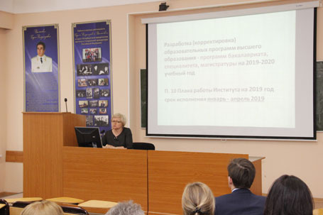 20 февраля 2019 года в Санкт-Петербургском филиале Университета прокуратуры Российской Федерации проведен очередной учебно-методический семинар для профессорско-преподавательского состава Института. В рамках семинара были обсуждены актуальные вопросы организации учебного процесса и деятельности педагогического работника. С информацией о предоставлении научно-педагогическими работниками Института сведений о доходах, расходах, об имуществе и обязательствах имущественного характера за 2018 г. выступила заведующая отделом государственной службы и кадровой работы Дементьева О.Ю. О разработке (корректировке) основных образовательных программ высшего образования на 2019-2020 учебный год в своих выступлениях рассказали начальник учебно-методического отдела Гронская Н.Ю. и председатель Методической комиссии Института Федышина П.В. Об особенностях наполнения и содержания Электронной информационной образовательной среды Института сообщил сотрудник отдела информационных технологий Вад В.Л.