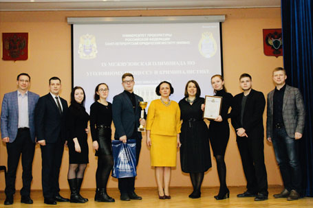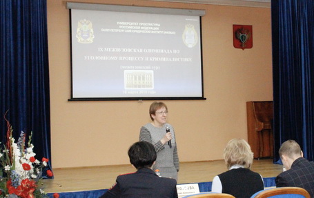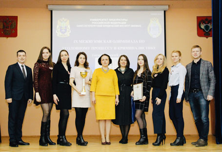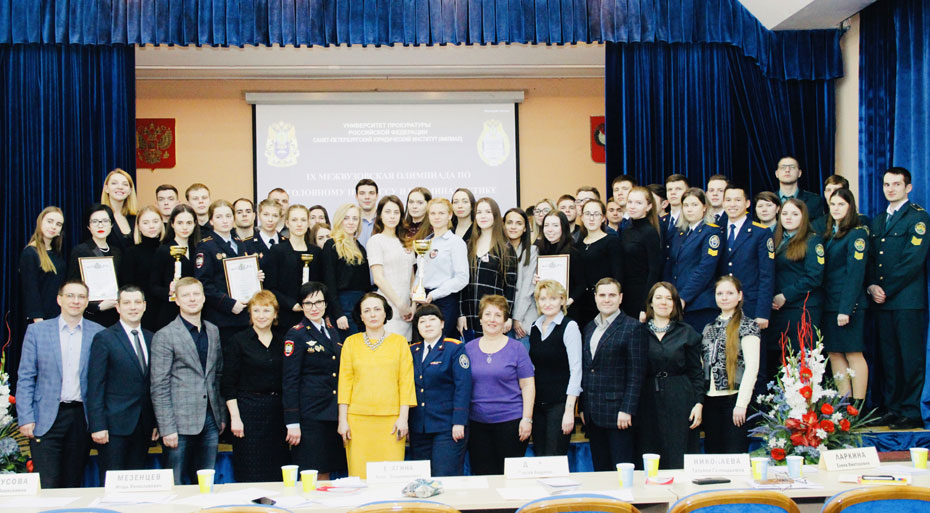 16 марта 2019 года в Санкт-Петербургском юридическом институте (филиале) Университета прокуратуры Российской Федерации состоялась IX Межвузовская студенческая олимпиада по уголовному процессу и криминалистике. В олимпиаде приняли участие 8 команд студентов из различных высших учебных заведений Российской Федерации: Санкт-Петербургского юридического института (филиала) Университета прокуратуры Российской Федерации, Санкт-Петербургского государственного университета, Санкт-Петербургской Академии Следственного комитета Российской Федерации; Санкт-Петербургского университета МВД России; Санкт-Петербургского им. В.Б. Бобкова филиала Российской таможенной академии; Северо-Западного института (филиала) Университета имени О.Е. Кутафина (МГЮА); Санкт-Петербургского государственного экономического университета. Открыла олимпиаду и с приветственными словами к участникам обратилась Серова Елена Борисовна, заведующий кафедрой уголовного процесса и криминалистики Санкт-Петербургского юридического института (филиала) Университета прокуратуры Российской Федерации.