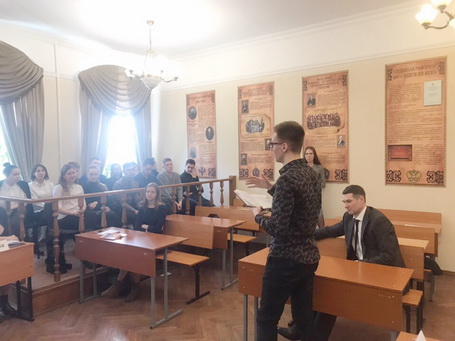 17 апреля 2019 года в рамках Недели науки в Санкт-Петербургском филиале Университета прокуратуры Российской Федерации состоялась студенческая деловая игра «Участие государственного обвинителя в состязательном процессе по уголовным делам с коллегией присяжных заседателей». В деловой игре приняли участие студенты 1 и 2 курсов: Голубина Александра, Шилова Наталья и Кошкаровский Владислав представляли сторону обвинения; Павкова Ксения, Радьков Бажен и Федоров Максим отстаивали сторону защиты. В качестве присяжных выступали 12 студентов первого курса. В состав компетентного жюри вошли слушатели факультета профессиональной переподготовки и повышения квалификации: заместитель прокурора Азово-Черноморского межрайонного природоохранного прокурора Краснодарского края Поляков А.Ю., заместитель Катав-Ивановского городского прокурора Челябинской области Поздеев А.М., доцент кафедры прокурорского надзора и участия прокурора в рассмотрении уголовных, гражданских и арбитражных дел Кулик Н.В., а также старший прокурор уголовно-судебного отдела прокуратуры Новгородской области Степанова И.А.