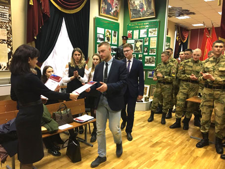 17 апреля 2019 года студенты Санкт-Петербургского филиала Университета прокуратуры Российской Федерации приняли участие в межвузовском круглом столе «НКВД в обеспечении правопорядка и государственной безопасности в период Великой Отечественной войны 1941-1945 гг.», проведенном в Санкт-Петербургском военном институте войск национальной гвардии. По итогам круглого стола наши студенты Сафронов Артем и Травин Семён награждены дипломом I степени за научный доклад «Памятник жителям Шлиссельбурга: история одного обелиска».