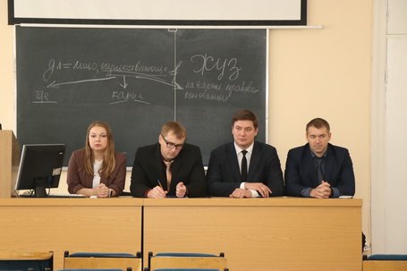 23 октября 2019 года на юридическом факультете Санкт-Петербургского филиала Университета прокуратуры Российской Федерации состоялась встреча слушателей факультета профессиональной переподготовки и повышения квалификации Института со студентами, обучающимися по программе магистратуры. Во встрече приняли участие начальник отдела по надзору за исполнением законов об охране природы Байкальской межрегиональной природоохранной прокуратуры Ермаченко С.В., и.о. прокурора г.Южно-Сахалинска Сахалинской области Верхотин З.В., заместитель начальника отдела по надзору за процессуальной деятельностью СУ СК РФ прокуратуры Ханты-Мансийского автономного округа Горбунов А.С. и начальник отдела по надзору за исполнением законов о несовершеннолетних и молодежи прокуратуры Краснодарского края Лобанов О.Н. Слушатели рассказали об организации работы в прокуратуре, возможных сложностях, с которыми могут столкнуться будущие выпускники и ответили на возникшие вопросы.