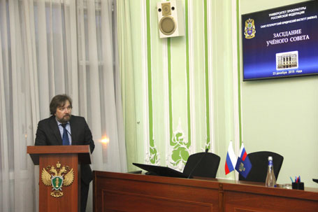 23 декабря 2019 года в Санкт-Петербургском филиале Университета прокуратуры Российской Федерации под председательством и.о. директора А.В. Сальникова состоялось заседание Ученого совета Института. Об итогах работы Института по направлениям деятельности в 2019 году отчитались заместители директора Института Сапожков А.А. и Корсунов А.Д. По докладу заместителя директора Института Сапожкова А.А. одобрены планы работы юридического факультета, факультета подготовки научных кадров и факультета профессиональной переподготовки и повышения квалификации Института на 2020 год. Заведующая отделом научной информации и издательской деятельности Тимощук О.Е. отчиталась о выполнении плана издательской деятельности Института за 2019 год и представила план издательской деятельности Института на 2020 год. По представлению начальника учебно-методического отдела Гронской Н.Ю. одобрены программы государственной итоговой аттестации по реализуемым в Институте основным образовательным программам бакалавриата, специалитета и магистратуры на 2020 год. Ученый секретарь Ученого совета Института Шиплюк В.А. выступил с отчетом о работе Ученого совета Института в 2019 году и представил план работы Ученого совета Института на 2020 год.