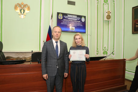 11 марта 2020 года в Санкт-Петербургском филиале Университета прокуратуры Российской Федерации проведена итоговая аттестация слушателей, проходивших обучение по программе повышения квалификации старших прокуроров, прокуроров отделов, управлений прокуратур субъектов Российской Федерации и приравненных к ним специализированных прокуратур, осуществляющих надзор за исполнением законов о защите прав предпринимателей. В течение обучения слушатели приобрели дополнительные навыки организации работы и управления в органах прокуратуры, а также обновили имеющиеся знания по разделам учебной программы: прокурорский надзор за исполнением законов и соответствием законам правовых актов о защите прав предпринимателей; участие прокурора в гражданском, административном судопроизводстве и арбитражном процессе; вопросы квалификации преступлений и прокурорского надзора за исполнением законов при расследовании преступлений в сфере предпринимательской деятельности. Обменялись положительным опытом прокурорской деятельности в ходе проведенного круглого стола «Актуальные вопросы прокурорского надзора за исполнением законов о защите прав предпринимателей». В завершение итоговой аттестации в торжественной обстановке заместитель директора Института Короп А.Б. поздравил слушателей с успешным окончанием обучения и вручил удостоверения о повышении квалификации.