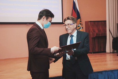 08 сентября 2020 года в День воинской славы России и День памяти жертв блокады Ленинграда в Санкт-Петербургском филиале Университета прокуратуры Российской Федерации состоялось торжественное собрание, посвящённое Дню Победы в Великой Отечественной войне 1941-1945 годов. В торжественном мероприятии приняли участие сотрудники института и первокурсники. В начале собрания заместитель директора института Сальников А.В. огласил приказ Генерального прокурора Российской Федерации о назначении именной стипендии Генерального прокурора Российской Федерации на 2020/21 учебный год пяти лучшим студентам института – Перевезенцевой Наталье, Скурлатову Владиславу, Шеставину Денису, Богданову Никите и Лемехову Сергею. Особую атмосферу в зале создали кадры кинохроники военных лет, а также подготовленные студентами и сотрудниками института видеоролики «Бессмертный полк» и «Поэтический взвод». С сообщением о жизни мирного населения в годы войны выступил студент 4 курса Травин Семен. Никого не оставила равнодушным и творческие выступления, подготовленные студентами Зиминым Максимом, Парняковой Светланой и Рудаковой Анастасией.