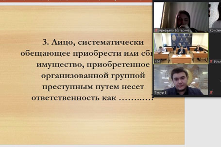 29 сентября 2020 года в Санкт-Петербургском юридическом институте (филиале) Университете прокуратуры Российской Федерации состоялась III Межвузовская студенческая олимпиада по уголовному праву с использованием дистанционных образовательных технологий. В состав жюри вошли преподаватели кафедры уголовного права, криминологии и уголовно-исполнительного права Института А.В. Зарубин, Д.Ю. Краев, Р.М. Кравченко, П.В. Федышина. В состав технической группы по организации и проведения Олимпиады вошли студенты Института О.В. Галинская, Д.В. Козулина, К.П. Кочеткова, Д.А. Яковлев. Олимпиада состояла из конкурсов, рассчитанных на проверку теоретических и практических знаний по Общей и Особенной части уголовного права. Во время выполнения первого конкурсного задания команды ответили на тестовые задания. При выполнении второго задания участники команд предложили квалификацию сцен криминального характера на репродукциях картин известных русских художников. В третьем туре капитаны команд-участниц отвечали на сложные вопросы применения уголовного права. Участники команд успешно справились с заданиями Олимпиады. По результатам проведения Олимпиады: I место заняла команда Санкт-Петербургского университета Министерства внутренних дел Российской Федерации в составе: Кравченко Ильи Александровича, Волоховой Анастасии Владимировны, Смекалова Евгения Сергеевича, Сеготского Даниила Романовича, Русакович Арины Валерьевны. II место заняла команда Санкт-Петербургского юридического института (филиала) Университета прокуратуры Российской Федерации в составе: Арефьевой Екатерины Викторовны, Бакановой Яны Владимировны, Нардиной Анны Викторовны, Астратовой Анастасии Дмитриевны. III место заняла команда Санкт-Петербургского государственного университета аэрокосмического приборостроения в составе: Бозкырлы Тимура Мехметовича, Ковтуненко Игоря Сергеевича, Столбова Дмитрия Александровича, Сафари Алэна Бахдиновича, Муратова Ильи Владимировича. Наибольшее количество баллов в индивидуальном рейтинге набрала студентка Института Баканова Яна Владимировна. Благодарим студентов за активное участие и желаем дальнейших успехов в науке!