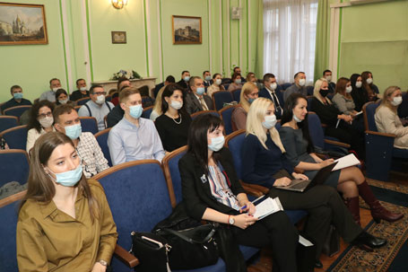 05 октября 2020 года на факультете профессиональной переподготовки и повышения квалификации Санкт-Петербургского филиала Университета прокуратуры Российской Федерации состоялось открытие потока слушателей, проходящих обучение по программе повышения квалификации старших помощников, помощников прокуроров городов, районов и приравненных к ним прокуроров специализированных прокуратур, осуществляющих надзор за исполнением законов и соответствием законам правовых актов. Со вступительным словом перед слушателями, прибывшими для обучения в Санкт-Петербургский филиал Университета прокуратуры Российской Федерации, выступил заместитель директора Института государственный советник юстиции 3 класса Короп А.Б., довел до аудитории основные требования, предъявляемые Генеральной прокуратурой России к повышению квалификации прокурорских работников, поставил задачи неукоснительного соблюдения требований учебного плана и дисциплины при нахождении в служебной командировке, а также мер по профилактике новой коронавирусной инфекции (COVID-19). Отметил необходимость постоянного совершенствования профессиональных навыков прокурорских работников в условиях изменяющегося законодательства Российской Федерации. Декан факультета профессиональной переподготовки и повышения квалификации Шиплюк В.А. осветил особенности прохождения обучения по программе повышения квалификации в Институте и формах промежуточного и итогового контроля.