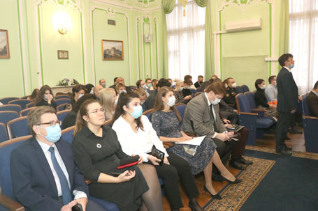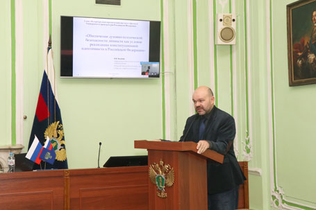 07 октября 2020 года на базе Санкт-Петербургского филиала Университета прокуратуры Российской Федерации с использованием дистанционных технологий видеоконференцсвязи проведен круглый стол «Религия и культура как факторы конструирования конституционной идентичности в Российской Федерации». Ректор Университета прокуратуры Российской Федерации доктор юридических наук, профессор Капинус О.С. открыла мероприятие и выступила с приветственным словом. Модерацию круглого стола провел директор Санкт-Петербургского филиала Университета прокуратуры Российской Федерации доктор юридических наук, профессор Спиридонов А.П. В работе круглого стола приняли участие: настоятель Храма в честь Покрова Пресвятой Богородицы (с. Отрадное Воронежской области), Председатель межрегиональной просветительской организации «Объединение православных ученых», протоиерей Геннадий Заридзе; проректор по научно-богословской работе Санкт-Петербургской Духовной Академии Русской Православной Церкви, протоиерей Константин Костромин; ректор Николо-Угрешской Духовной Семинарии, иеромонах Кирилл (Зинковский); Советник Конституционного Суда Российской Федерации доктор юридических наук Карцов А.С.; ректор Русской Христианской гуманитарной академии, доктор философских наук, профессор Богатырёв Д.К.; Уполномоченный по правам человека Воронежской области Зражевская Т.Д.; научные и педагогические работники Университета прокуратуры Российской Федерации, иных научных и образовательных организаций, представители государственных органов, общественных и религиозных организаций, молодые ученые, студенты и аспиранты. Предметом обсуждения в рамках работы круглого стола стали актуальные вопросы духовно-нравственного и патриотического воспитания, направленные на формирование конституционной идентичности в Российской Федерации, а также обсуждение основных направлений совершенствования государственной политики в данной области. Предложенная тематика вызвала оживленную и плодотворную дискуссию.