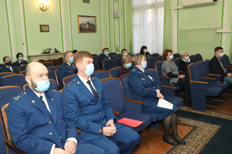 12 января 2021 года в Академическом зале Санкт-Петербургского филиала Университета прокуратуры Российской Федерации состоялось торжественное собрание, посвященное Дню работника прокуратуры Российской Федерации. В собрании с соблюдением санитарно-эпидемиологических требований приняли очное участие руководители подразделений, члены Учёного совета Института, а в дистанционном формате профессорско-преподавательский состав и сотрудники деканатов, отделов Института. Во вступительном слове директор Института доктор юридических наук, профессор А.П. Спиридонов поздравил всех ветеранов органов прокуратуры, Университета прокуратуры Российской Федерации и Института, сотрудников, членов их семей с профессиональным праздником, пожелал здоровья, служебных успехов, душевной гармонии, спокойствия и уверенности в завтрашнем дне. В ходе торжественного собрания были оглашены поздравления, поступившие в адрес руководства и коллектива Института, приказы Генерального прокурора Российской Федерации И.В. Краснова, ректора Университета прокуратуры Российской Федерации О.С. Капинус, а также директора Института о поощрении профессорско-преподавательского состава и сотрудников Института за высокие показатели в научной и образовательной деятельности и студентов юридического факультета за достижения в различных областях студенческой жизни – учебной, научной, общественной, спортивной.