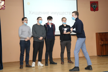 05 марта 2021 года в Институте состоялась Внутривузовская студенческая интеллектуальная игра «Что? Где? Когда?» по уголовному праву для студентов 3 курса. В мероприятии приняли участие 40 студентов 3 курса в составе 8 команд: «Отличный пленум, господа (ОПГ)», «Женский криминал», «Особо тяжкие», «Следователи прокуратуры», «Advocatam.net», «Тупые углы», «Обвиняемые», «С корыстной целью». В состав жюри вошли преподаватели кафедры уголовного права, криминологии и уголовно-исполнительного права: Д.А. Безбородов, А.В. Зарубин, Д.Ю. Краев, Ю.В. Морозова, Р.М. Кравченко и магистрант института О.В. Галинская. Олимпиада состояла из конкурсов, рассчитанных на проверку теоретических и практических знаний по Общей и Особенной части уголовного права. Во время выполнения первого конкурсного задания команды ответили на тестовые задания. При выполнении второго задания участникам команд необходимо было дать уголовно-правовую оценку ситуации, продемонстрированной в эпизоде художественного фильма, наглядно и динамично показывающем совершение преступлений. В третьем туре участники интеллектуальной игры соревновались в конкурсе «Крокодил». Участники продемонстрировали обширные познания в области уголовного права и прекрасно справились со многими заданиями. По итогам упорной борьбы места определились следующим образом: I место заняла команда «Следователи прокуратуры», в составе: Смирнова Владимира, Патшиной Елены, Сиренко Игоря, Эркаева Антона, Юдина Александра. II место заняла команда «Обвиняемые», в составе: Усикова Дмитрия, Парфеновой Виктории, Рослякова Виталия, Торговой Кристины, Швецова Ильи. III место заняла команда «Advocatam.net», в составе: Шишкина Олега, Войнаковой Кристины, Лемехова Сергея, Сафронова Артема, Смирновой Светланы. Победившие команды были награждены дипломами и сладкими призами. Участникам других команд были вручены сертификаты участников.