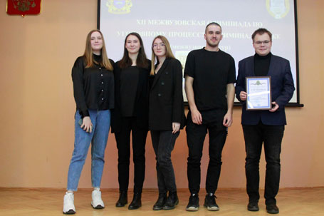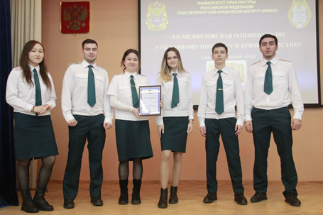12 марта 2022 года Санкт-Петербургским юридическим институтом (филиалом) Университета прокуратуры Российской Федерации проведена в XII Межвузовская студенческая олимпиада по уголовному процессу и криминалистике. В олимпиаде приняли участие 5 команд студентов из различных высших учебных заведений Российской Федерации: «Следователи прокуратуры» Санкт-Петербургского юридического института (филиала) Университета прокуратуры Российской Федерации. Состав команды: Юдин Александр, Побережный Павел, Григоренко Кирилл, Ю Енг Бок, Сафронов Артем, Лемехов Сергей, (Богданов Никита, Мещерякова Ангелина, Смирнова Светлана, Шишкин Олег - резерв), «Следствие довели» Санкт-Петербургского института (филиала) Всероссийского государственного университета юстиции (РПА Минюста России). Состав команды: Алексеев Павел, Коновалова Анжелика, Иванова Александра, Божаткин Никита, Виноградова Анна, Пархоменко Кира; «Следком» Санкт-Петербургской академии Следственного комитета Российской Федерации. Состав команды: Глухов Ярослав, Федоров Валерий, Соркина Екатерина, Игнатенков Всеволод, Мозгонов Егор, Хлынов Никита; «Граница» Санкт-Петербургского имени В.Б. Бобкова филиала Российской таможенной академии. Состав команды: Мирзаметов Джалил, Акчинова Айлана, Бакиров Бахтийар, Егорова Яна, Саоськина Дарья, Габдулхаков Марсель; «Новаторы» Санкт-Петербургского университета МВД России. Состав команды: Непомнящий Кирилл, Сорокина Полина, Орлов Алексей, Серовенко Никита, Соколова Анна, Горюнова Дарья, (Гордеев Дмитрий – резерв). В рамках Олимпиады участники предоставили на суд жюри «Приветствие» и «Домашнее задание» на тему: «Цифровизация уголовного судопроизводства в России: перспективы и проблемы». А также поучаствовали в конкурсах «Угадай термин» и «Кроссворд». В состав компетентного жюри олимпиады вошли: - председатель жюри – доцент кафедры уголовного процесса и криминалистики Санкт-Петербургского юридического института (филиала) Университета прокуратуры Российской Федерации Елена Владимировна Елагина, кандидат юридических наук, доцент, - профессор кафедры уголовного процесса и криминалистики Санкт-Петербургского юридического института (филиала) Университета прокуратуры Российской Федерации Татьяна Геннадьевна Николаева, доктор юридических наук, профессор, - старший преподаватель кафедры уголовного процесса Санкт-Петербургской академии Следственного комитета Российской Федерации Оксана Вениаминовна Петрова, - доцент кафедры криминалистики Санкт-Петербургского университета МВД России Бадзгарадзе Татьяна Александровна, кандидат юридических наук, - доцент кафедры уголовного права и процесса Санкт-Петербургского института (филиала) ВГУЮ (РПА Минюста России) Ксендзов Юрий Юрьевич, кандидат юридических наук, - доцент кафедры уголовно-правовых дисциплин Санкт-Петербургского имени В.Б. Бобкова филиала Российской таможенной академии Байрамов Рамзи Раджабович, кандидат юридических наук, доцент. В результате интересной, упорной и справедливой борьбы определились победители олимпиады: 1 место заслуженно заняла команда «Новаторы» (Санкт-Петербургского университета МВД России); 2 место удостоилась команда «Следователи прокуратуры» (Санкт-Петербургского юридического института (филиала) Университета прокуратуры Российской Федерации); 3 
