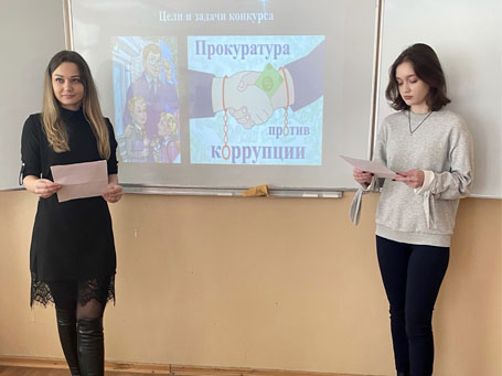 08 апреля 2022 года в рамках мероприятий антикоррупционной направленности студенты 3 курса юридического факультета Института Гордиенко Кира, Киреева Анастасия и студенты 1 курса Глуздак Глеб и Лихоманова Яна при поддержке работников кафедры общегуманитарных и социально-экономических дисциплин (заведующий кафедрой С. П. Синявская, доцент кафедры Ш. М. Шурпаев) провели открытые уроки в государственном бюджетном общеобразовательном учреждении средней общеобразовательной школе № 124 с углубленным изучением английского языка Выборгского района Санкт-Петербурга. В рамках мероприятия студентами Института были освещены вопросы, связанные с общественной опасностью коррупции, типичными коррупционными ситуациями, которые могут возникнуть в ходе учебного процесса, также способы противодействия им. Школьникам было также рассказано о Международном молодежном конкурсе социальной антикоррупционной рекламы «Вместе против коррупции», организуемом Генеральной прокуратурой Российской Федерации. Встреча прошла в приятной дружеской обстановке. Выражаем благодарность руководству средней общеобразовательной школы №124 Выборгского района за готовность к сотрудничеству.
