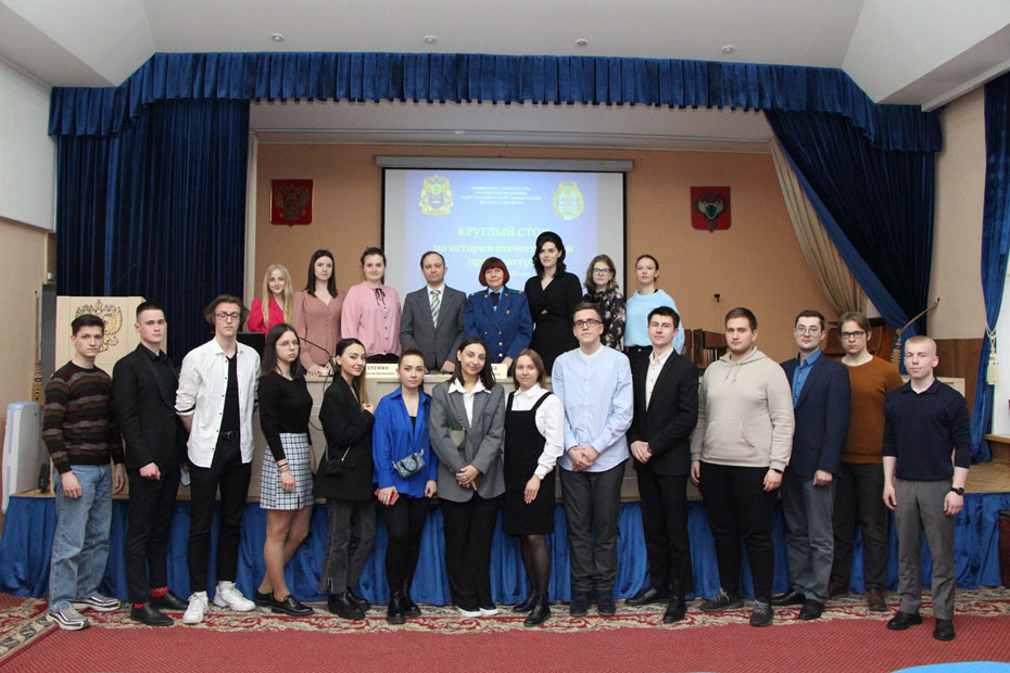 21 апреля 2021 г. в Актовом зале Санкт-Петербургского юридического института (филиала) Университета прокуратуры Российской Федерации состоялся ежегодный круглый стол, посвященный истории отечественной прокуратуры. В работе круглого стола приняли участие студенты 1 и 4 курсов. Ведущими круглого стола были зав. кафедрой теории и истории государства и права Е. Е. Амплеева, доценты Еремин А. В. и Иванова Н. М. В рамках круглого стола были рассмотрены вопросы деятельности прокуратур субъектов Российской Федерации – республик Удмуртия, Кабардино-Балкария, Ивановской, Калининградской и Белгородской областей, Приволжского федерального округа в связи с историей государства и изменениями в законодательстве СССР и Российской федерации. Внимание также было уделено проблемам осуществления прокурорского надзора в исторической ретроспективе.