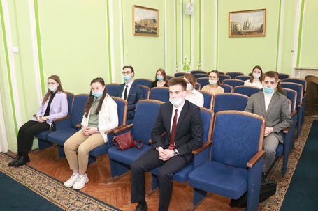 26 мая 2022 г. в Санкт-Петербургском филиале Университета прокуратуры Российской Федерации состоялась встреча прокурора Республики Коми государственного советника юстиции 2 класса Егорова Николая Валентиновича со студентами юридического факультета Института, проходящими обучение по целевым направлениям от прокуратуры Республики Коми. Во встрече приняли участие директор института государственный советник юстиции 2 класса Спиридонов Анастас Павлович, представитель Республики Коми в Северо-Западном регионе Каракчиева Марина Анатольевна, заместитель директора института Сальников Алексей Валентинович и декан юридического факультета Севастьяник Ирина Клавдиевна. Прокурор республики уделил большое внимание формированию профессиональных качеств будущих сотрудников прокуратуры и выразил надежду, что каждый студент-целевик, придя на службу, приумножит знания и авторитет своих наставников. В ходе встречи напутственные слова для будущих прокуроров прозвучали от директора института Спиридонова А.П., представителя Республики Коми в Северо-Западном федеральном округе Каракчиевой М.А. Из студии в г.Сыктывкаре в формате ВКС от лица бывших студентов, ныне работников прокуратуры Коми, слова приветствия прозвучали от заместителя прокурора республики Чиркова Р.А. Свои пожелания успехов высказал также. председатель Совета ветеранской организации Ковалев В.В.