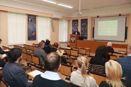 19 октября 2022 года в соответствии с планом работы состоялся учебно-методический семинар педагогических работников Санкт-Петербургского юридического института (филиала) Университета прокуратуры Российской Федерации на тему: «Актуальные вопросы образовательной деятельности». Открыл работу семинара заместитель директора Сапожков А.А. На семинаре были заслушаны доклады и выступления: профессора кафедры прокурорского надзора и участия прокурора в рассмотрении уголовных, гражданских и арбитражных дел Никитин Е.Л. «Роль концептуальных основ теории прокурорской деятельности в процессе подготовки кадров для органов прокуратуры»; старшего преподавателя кафедры государственно-правовых дисциплин Булгаковой Л.С. «Использование практики органов прокуратуры Российской Федерации при проведении занятий по административному праву»; старшего преподавателя кафедры общегуманитарных и социально-экономических дисциплин Тимощука К.И. «Вопросы использования персонального компьютера и иных девайсов педагогическим работником».