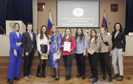28 октября 2022 г. в Санкт-Петербургском филиале Университета прокуратуры Российской Федерации состоялся III внутривузовский турнир по конституционному праву. В Турнире приняли участие более 70 обучающихся 2 курса. Турнир состоял из 4 туров: 1 тур - «Приветствие», участникам необходимо было снять видеоролик, который познакомит команду с членами жюри и участниками других команд; 2 тур – «Новеллы Конституции Российской Федерации», участникам был предложен ряд изображений (ребусов) при помощи которых необходимо было раскрыть смысл конституционных поправок. 3 тур – «Кроссворд», участникам Турнира необходимо было разгадать кроссворд, состоявший из 15 вопросов. 4 тур – «Крокодил», участникам необходимо было объяснить своей команде загаданный членами жюри термин из конституционного права при помощи жестов. По итогам прохождения всех конкурсов команды заняли следующие места: 1 место – команда «Команда У»; 2 место – команда «Подозрительные лица»; 3 место – команда «Республика N» и «За Константина и его жену». Поздравляем победителей и благодарим всех участников за проявленный интерес, творческий подход к Турниру! Желаем дальнейших успехов в научной деятельности!