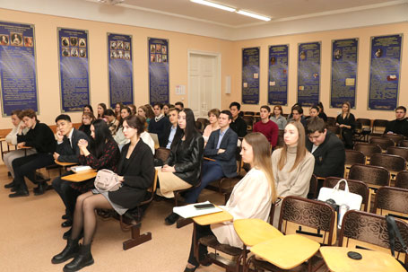 30 ноября 2022 г. во исполнение положений Концепции совершенствования системы государственно-патриотического воспитания в прокуратуре Российской Федерации, утвержденной приказом Генерального прокурора Российской Федерации от 14.09.2022 № 510, кураторы 301 и 302 учебных групп доценты кафедры уголовного процесса и криминалистики Елагина Е.В. и Григорьева М.А провели объединенный кураторский час, на котором были обсуждены вопросы сохранения и укрепления российских духовно-нравственных ценностей. С докладом на тему «Основы государственной политики по сохранению и укреплению традиционных российских духовно-нравственных ценностей» (утверждены Указом Президента Российской Федерации № 809 от 09.11.2022) выступил староста 301 группы Сарапкин Владимир. Елагина Е.В. ознакомила студентов с Концепцией совершенствования системы государственно-патриотического воспитания в прокуратуре Российской Федерации, утвержденной приказом Генерального прокурора Российской Федерации от 14.09.2022 № 510, обратив внимание студентов на ключевые вопросы, имеющие отношение как непосредственно к процессу обучения, так и последующему прохождению службы в органах прокуратуры Российской Федерации. Далее во исполнение Календарного плана воспитательной работы и индивидуальных планов работы кураторов Григорьева М.А. особо заострила внимание студентов на вопросах профилактики наркомании, табакокурения и употребления алкоголя, а также обратила внимание на соблюдение Правил внутреннего распорядка, недопущения пропусков занятий без уважительных причин.