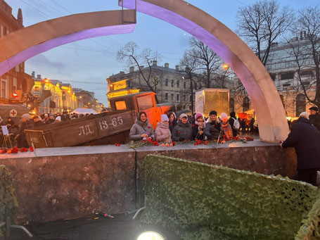 20-21 января 2023 г. слушатели факультета профессиональной подготовки и повышения квалификации Санкт-Петербургского филиала Университета прокуратуры Российской Федерации, обучающиеся по программе повышения квалификации старших прокуроров, прокуроров отделов, управлений прокуратур субъектов Российской Федерации и приравненных к ним специализированных прокуратур, заместителей прокуроров городов и районов и приравненных к ним специализированных прокуратур, участвующих в рассмотрении уголовных дел судами, и преподаватели посетили интерактивную выставку «Живые улицы», воссоздающую атмосферу блокадного Ленинграда. Экспозиции данной выставки заполнили все пространство Манежной площади, превратив ее в музей под открытым небом. Тематическим центром экспозиции стала легендарная «полуторка», — автомобиль модели ГАЗ-АА, активно использовавшийся для доставки продовольствия в блокадный Ленинград, а также для вывоза из города людей. На территории выставки представлены инсталляции «блокадной квартиры», «школьного класса», «репетиционной комнаты оркестра» и другие, которые позволяют ощутить атмосферу жизни в осажденном городе. Слушатели приняли участие в церемонии возложения цветов к монументу, символизирующему разрыв кольца блокады, отдав дань памяти героическим защитникам и жителям Ленинграда.