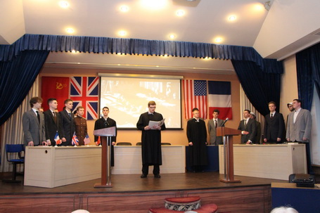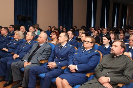26 января 2023 года в Санкт-Петербургском филиале Университета в рамках реализации всероссийской акции «Без срока давности» и мероприятий по государственно-патриотическому воспитанию в системе прокуратуры Российской Федерации, состоялась премьера театрально-постановочной композиции «Судебные процессы над нацистами и их пособниками в Нюрнберге», по исторической реконструкции некоторых эпизодов Нюрнбергского судебного процесса, проведенного Международным военным трибуналом с 20 ноября 1945 года по 1 октября 1946 года и посвященной дню полного освобождения Ленинграда от фашистской блокады. Инициатором совместного проекта с Санкт-Петербургским филиалом Университета выступило руководство прокуратуры Ленинградской области. В мероприятии приняли участие начальник управления Генеральной прокуратуры Российской Федерации по Северо-Западному федеральному округу Н.Е. Солнышкина, директор Санкт-Петербургского юридического института (филиала) Университета прокуратуры Российской Федерации А.П. Спиридонов, прокурор Ленинградской области С.А. Жуковский, исполняющий обязанности прокурора Санкт-Петербурга В.В. Винецкий, заместитель Северо-Западного транспортного прокурора Е.В. Ермолинская, руководитель Следственного управления Следственного комитета России по Ленинградской области С.Т. Сазин, протоиерей Артемий Литвинов, руководитель департамента по взаимодействию с федеральными органами Президентской библиотеки имени Б.Н. Ельцина Алексей Воробьев, президент фонда поддержки и развития культурного наследия А.Ф. Кони Л.В. Кулешова, сотрудники, студенты, аспиранты и слушатели Института, ветераны и работники прокуратуры Ленинградской области. С приветственными словами к участникам мероприятия обратились начальник управления Генеральной прокуратуры Российской Федерации по Северо-Западному федеральному округу Н.Е. Солнышкина и прокурор Ленинградской области С.А. Жуковский, который отметил, - «В прошедшем году по поручению Генерального прокурора Российской Федерации Игоря Викторовича Краснова сотрудниками прокуратур Ленинградской области и Санкт-Петербурга проведена титаническая работа по сбору доказательств с изучением тысяч архивных документов, кинофотохроники, опросом специалистов и очевидцев злодеяний фашистов, чьи действия на территории нашей агломерации в годы Великой Отечественной войны признаны региональными судами геноцидом народов Советского Союза. Сегодня мы с вами всё чаще и чаще видим попытки умышленного искажения истории, принижения роли великого подвига наших предков. Именно поэтому, проводится реконструкция всемирно известного Нюрнбергского процесса. Процесса справедливости и правды!» Благодаря таланту участников театральной студии Санкт-Петербургского филиала, зрители на час переместились в исторические события. В ходе реконструкции были освещены ключевые эпизоды легендарного процесса, представлены истинные зверства «коричневой чумы», злодеяния главных идейных вдохновителей и руководителей неоправданно жестоких акций и кровавых бесчинств, в также их пособников, продемонстрирован высокий профессионализм и преданность своему делу государственных обвинителей, выступавших от лица Советского Союза. По окончании постановки директор Санкт-Петербургского филиала Университета А.П. Сп