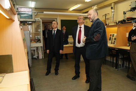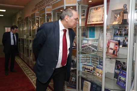 В соответствии с программой визита была проведена экскурсия по Институту. Ректор ознакомился с историей Института, аудиторным фондом, техническим средствами обучения, музейно-выставочным комплексом и др. Далее ректор встретился с профессорско-преподавательским составом Института. В ходе встречи состоялся заинтересованный разговор на актуальные темы образовательной и научной жизни Института и Университета в целом.