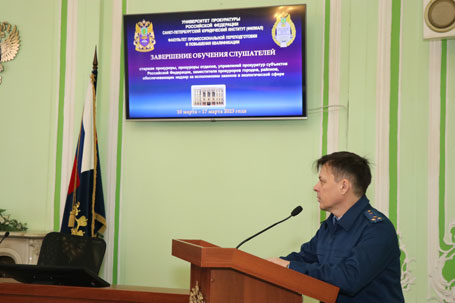 17 марта 2023 года в Санкт-Петербургском юридическом институте (филиале) Университета прокуратуры Российской Федерации завершилось обучение слушателей по программе повышения квалификации старших прокуроров, прокуроров отделов, управлений прокуратур субъектов Российской Федерации, заместителей прокуроров городов и районов, обеспечивающих надзор за исполнением законов в экологической сфере. В результате повышения квалификации обучающиеся систематизировали имеющиеся знания по вопросам прокурорского надзора в экологической сфере; по вопросам квалификации преступлений и участия прокурора в уголовном судопроизводстве. В торжественном собрании приняли участие заведующий кафедрой государственно-правовых дисциплин Лавров В.В. и старший преподаватель этой же кафедры Булгакова Л.С. Поздравляем слушателей и желаем успехов в дальнейшей профессиональной деятельности!