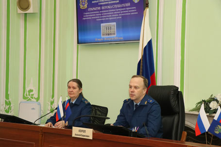 22 марта 2023 года на факультете профессиональной переподготовки и повышения квалификации Санкт-Петербургского юридического института (филиала) Университета прокуратуры Российской Федерации состоялось открытие потока слушателей, проходящих обучение по программе повышения квалификации старших помощников, помощников военных прокуроров гарнизонов, обеспечивающих надзор за исполнением законов органами военного управления, воинскими должностными лицами, соответствием законам издаваемых ими правовых актов, - всего прибыли 20 слушателей. Заместитель директора Института государственный советник юстиции 3 класса Короп А.Б. довел до аудитории основные требования, предъявляемые Генеральной прокуратурой Российской Федерации и Университетом прокуратуры Российской Федерации, поставил задачи неукоснительного соблюдения требований учебного плана и дисциплины. Декан факультета профессиональной переподготовки и повышения квалификации Головко И.И. осветила особенности обучения по программе повышения квалификации, формы и сроки промежуточного и итогового контроля.