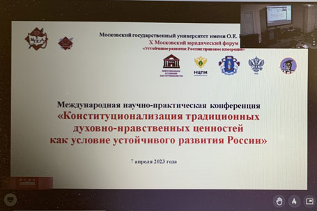 07 апреля 2023 года работники Санкт-Петербургского филиала Университета прокуратуры Российской Федерации приняли участие в Международной научно-практической конференции «Конституционализация традиционных духовно-нравственных ценностей как условие устойчивого развития России». Организатором научного мероприятия выступил Московский государственный юридический университет имени О.Е. Кутафина (МГЮА). В работе Конференции приняли участие заведующий кафедрой государственно-правовых дисциплин Лавров В.В., тема «Конституционное право на свободу творчества и защита духовно-нравственных ценностей Российской Федерации», и доцент кафедры Чепенко Я.К., тема «Конституционная идентичность как принцип толкования». Площадка Международной научно-практической конференции объединила преподавателей, аспирантов, представителей органов публичной власти и научной общественности. Участники мероприятия дискутировали по широкому кругу тем, включающих вопросы: «Конституционные ценности и приоритеты России»; «Конституционные традиции России: от истоков к современным реалиям»; «Правовая безопасность как фактор устойчивого развития России» и другие.