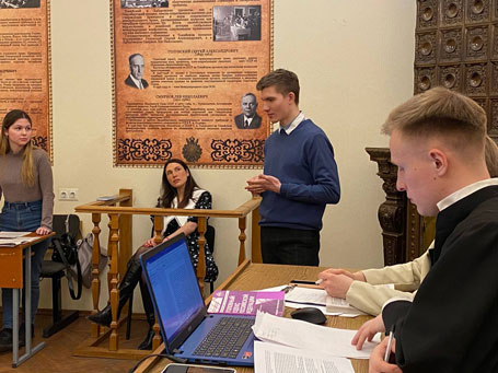Обучающиеся выработали навыки участия во всех этапах судебного разбирательства, включая подготовительную часть судебного заседания, судебное следствие, судебные прения, реплики, постановление решения суда. Деловая игра проведена в соответствии с нормами Уголовно-процессуального кодекса Российской Федерации.