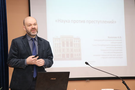 18 апреля 2023 года в рамках реализации мероприятий Недели науки в Санкт-Петербургском филиале Университета прокуратуры Российской Федерации заведующим криминалистической лабораторией, кандидатом юридических наук, доцентом А.В. Холоповым проведена открытая лекция «Наука против преступлений» для студентов 1 и 2 курса юридического факультета Института. В ходе лекции участники ознакомились с новейшими достижениями в области естественных и гуманитарных наук и криминалистическими технологиями, используемыми в области противодействия преступности, а также в раскрытии, расследовании и предупреждении преступлений. Мероприятие вызвало искренний интерес у слушателей.