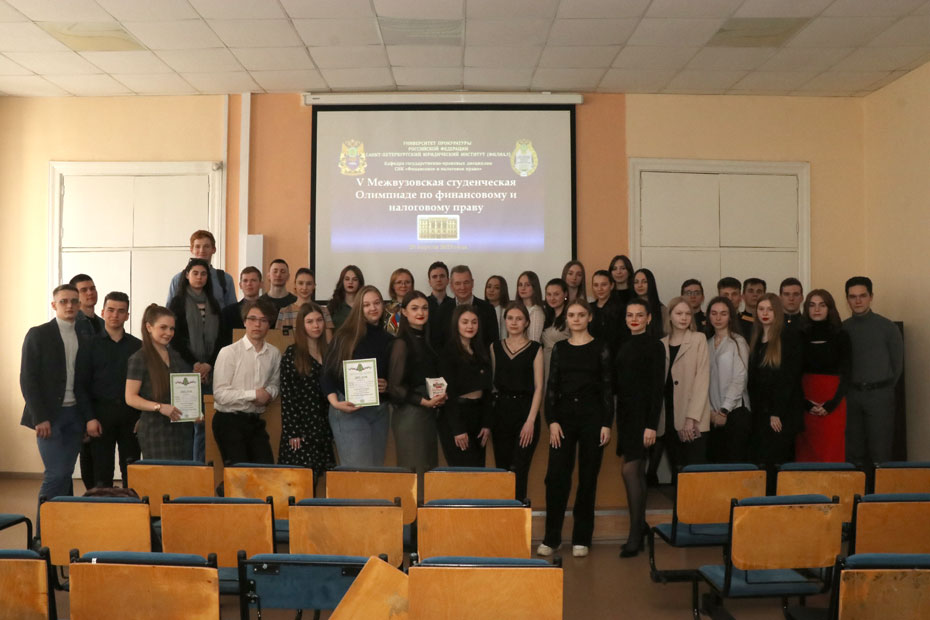20 апреля 2023 года в Санкт-Петербургском филиале Университета прокуратуры Российской Федерации проведена V Межвузовская студенческая Олимпиада по финансовому и налоговому праву. В Олимпиаде приняли участие 8 команд из образовательных организаций Санкт-Петербурга: Санкт-Петербургской академии Следственного комитета Российской Федерации, Северо-Западного института управления (филиала) РАНХиГС, Санкт-Петербургского Университета МВД Российской Федерации, Санкт-Петербургского филиала Университета прокуратуры Российской Федерации. Олимпиада включала в себя 5 этапов: I − «Угадайка», II − «Портретная галерея», III − «Видеозадача», IV − «В царствии смекалки», V − «Домашнее задание». По результатам проведения Олимпиады призовые места распределились следующим образом: I место − команда «Мозговой штурм» в составе: Шастина Максима, Холодова Кирилла, Котосонова Егора, Николаевой Елизаветы, Бушуева Артема; II место − команда «Отечественный производитель» в составе: Матюшкиной Александры, Маликовой Александры, Голубевой Юлии, Новиковой Елизаветы, Ревягина Матвея; III место − команда «Те самые прокуроры» в составе: Новосельцевой Татьяны, Ампилоговой Елизаветы, Красивенковой Дианы, Курчук Валерии, Сафоновой Софьи. Победившие команды награждены дипломами. Участникам других команд вручены сертификаты. Организаторы Олимпиады и члены жюри благодарят всех участников за яркие выступления, ответственный подход к выполнению всех заданий Олимпиады!