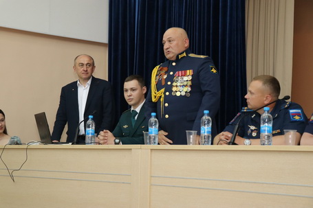 26 мая 2023 года в Санкт-Петербургском филиале Университета прокуратуры Российской Федерации при содействии органов 301 военной прокуратуры гарнизона и Военной прокуратуры Санкт-Петербургского гарнизона состоялось расширенное Межвузовское заседание студенческого научного кружка «Правоохранительные органы» − «Урок мужества» в формате встречи студентов и курсантов с военнослужащими – участниками СВО из различных родов войск. В мероприятии приняли участие студенты и курсанты высших учебных заведений Санкт-Петербурга: Санкт-Петербургского военного ордена Жукова института войск национальной гвардии Российской Федерации; Военной академии связи имени С. М. Будённого; Михайловской военной артиллерийская академии; Института ФСБ России (г. Санкт-Петербург); Санкт-Петербургского имени В.Б. Бобкова филиала Российской таможенной академии; Санкт-Петербургского филиала Университета прокуратуры Российской Федерации. Целью проведения «Урока мужества» является государственно-патриотическое воспитание студентов и курсантов, а также получение достоверной информации с фронта и противодействие пропаганде враждебных СМИ. В ходе встречи военнослужащие рассказали о своем участии в боевых действиях и ответили на вопросы студентов и курсантов. Особый интерес вызвали вопросы личной мотивации военнослужащих и снабжения вооруженных сил. Благодарим гостей и слушателей за проявленный интерес!